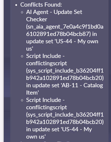 Identifies potential conflicts between the reviewed update set and other update sets in your ServiceNow instance.